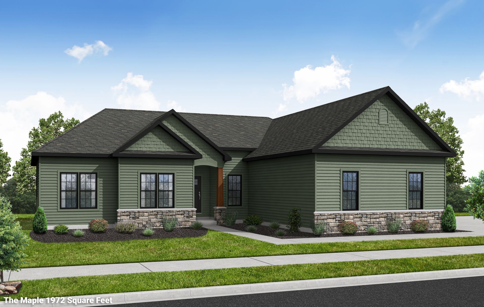 In unpretentious clean lines, The Maple Ranch house plan is found to have a simple, rectangular shape, with a low profile. Offering a vast array of architectural elements to personalize the home, the spacious single story, 4 beds 3 baths home is roomy with an open floor plan. Historically popular in the 50s and 60s, Ranch style homes are enjoying renewed popularity among those younger home owners from generations not having lived in such a home previously. Other features typically used on these popular styled homes are cross-gabled, and side-gabled roofs, and simple and/or rustic interior and exterior trim. The Maple house plan includes a sitting area in the master suite, a covered entry and great room. The Maple from Price Custom Homes fits nicely in Eastern, Southern, and Central Ohio. This area includes Athens County, Fairfield County, Fayette County, Franklin County, Hocking County, Licking County, Perry County, Pickaway County, Ross County, and Vinton County - including the towns of Athens, Chillicothe, Circleville, Lancaster, Logan, London, Newark, New Lexington, and Zanesville.